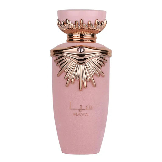 Haya by Lattafa is a bubbly, feminine sparkling floral fragrance released in 2022. With its lively top of champagne, strawberry, blood orange, and rose, it transitions into a heart of gardenia, jasmine, and vanilla orchid before settling on a warm base of amber, sandalwood, and chestnut.